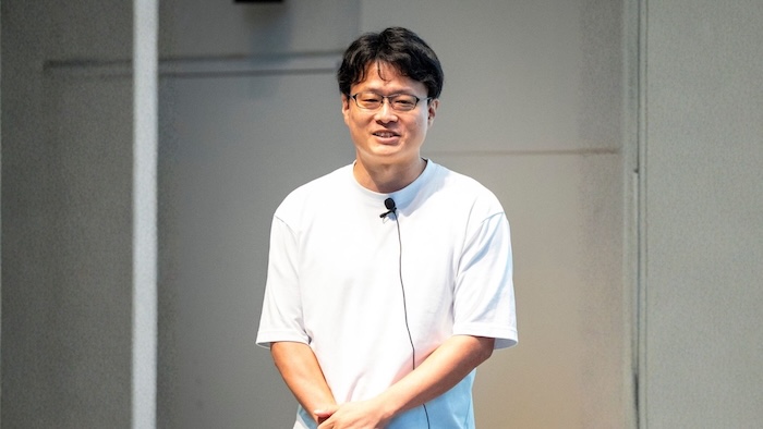 安田氏は卵のデザインのロゴを示しながら、 「AIそのものを作っているのではなく、その周辺を支える オペレーティングシステムを作っている会社です。 卵でいうと黄色い部分がLLMなら、 私たちは白い部分のような存在です」 と語り、カサナレ株式会社の立ち位置を表現しました。
